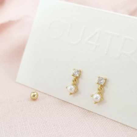 aretes mini perla clásica circonia – plata 925