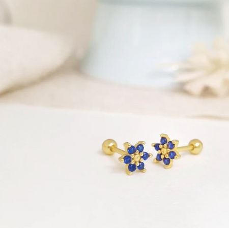 aretes mini flor circonia azul – plata 925