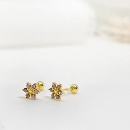 aretes mini flor circonia rosa oscuro – plata 925