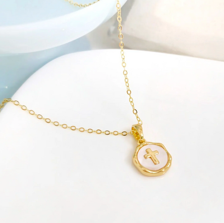 collar cruz nacar - plata 925