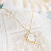 medalla: nacar, perlas cultivadas AAA y borde de fina aleación de metales con baño de oro 18k